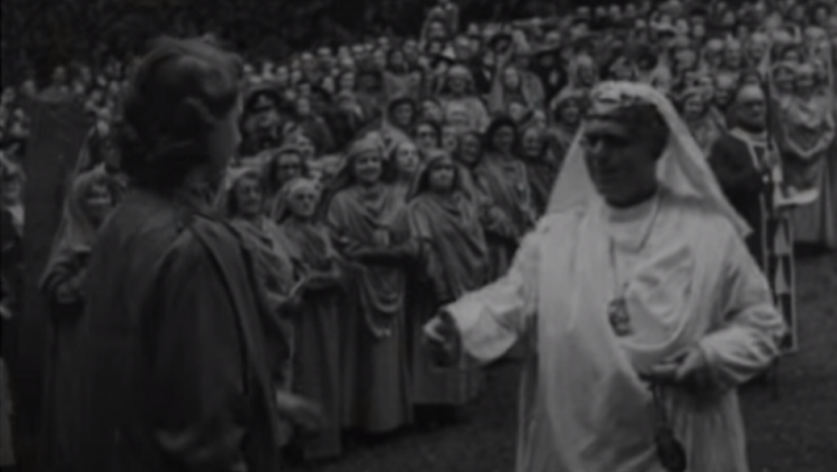 Iznad je kompozitna fotografija mlade (kakva je tada bila) princeze Elizabete koja je navodno bila počašćena pretpostavljenim paganskim druidima pre njenog krunisanja 1953. godine.