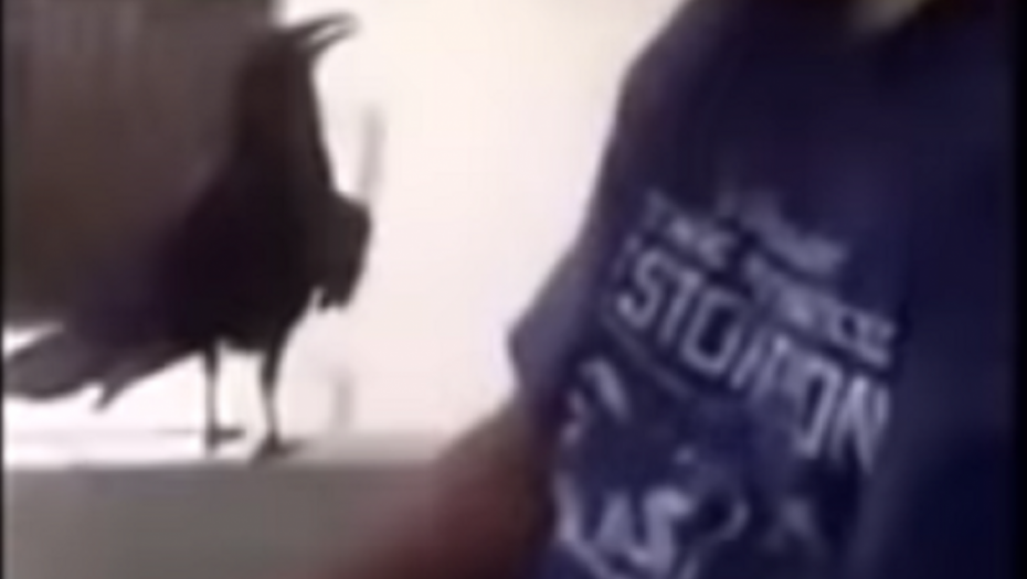 Gavran iz videa prišao je čoveku koji je bio pomalo suzdržan. Nije hteo da ga dodirne, ali mu se prijateljski obratio. Nismo sigurni što je očekivao od ove pametne životinje, no ona mu nije uzvratila na isti način.
