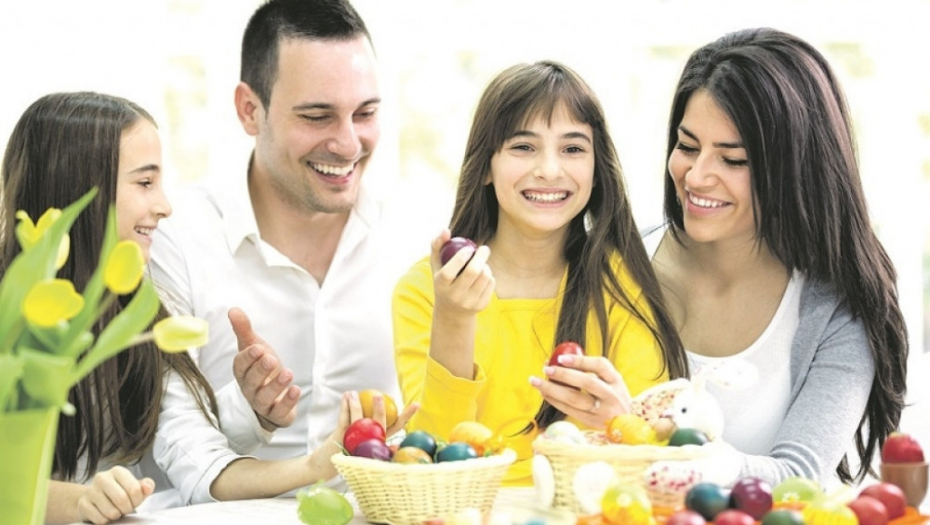 Na stolu stoji ukrašena činija sa ofarbanim jajima. Domaćin prvi uzima jedno jaje, a za njim svi ukućani.