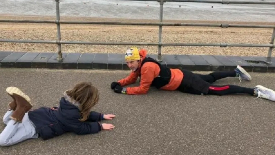 Ian je zatim legao na pločnik sa Rudiem i čavrljao je sa dečakom pre nego što je na kraju otpratio njega i majku do automobila.