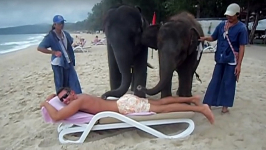 Jedan turista koji je boravio u Puketu imao je priliku da uživa u nesvakidašnjem tretmanu. Masirala su ga dva slončeta!