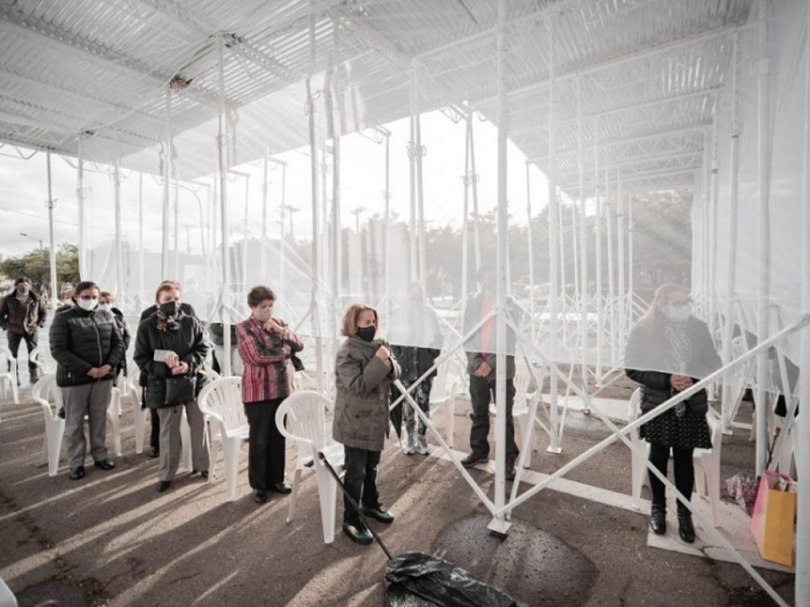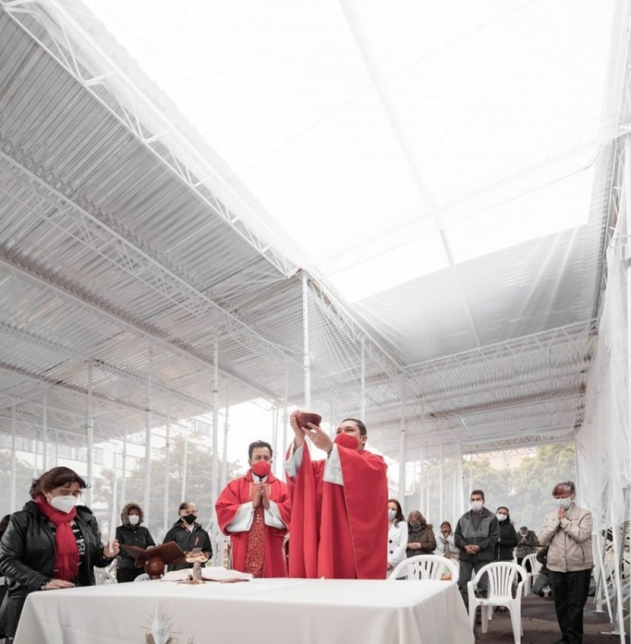 Pre ovogodišnjeg Uskrsa, gradonačelnica Bogote Klaudia Lopez odlučila je da uvede vrlo stroga ograničenja u grad. Tada su arhitekte iz grupe Kolab-19 odlučili da pomognu vernicima koji pripadaju nekoj od lokalnih parohija kako bi im omogućili bezbedno učešće u misi tokom pandemije. Članovi tima su za njih dizajnirali i podigli privremenu crkvu na parkingu, koju odlikuje struktura kostura koja obezbeđuje odgovarajući protok vazduha.