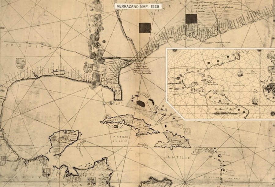 Volter Roli je iste godine poslao ekspediciju na čelu sa Filipom Amadasom i Arturom Barolom, kako bi istražili istočnu obalu Severne Amerike. Oni su stigli na ostrvo Roanok i ubrzo uspostavili odnose sa plemenima Sekotan i Kroatoan, a u Englesku su se vratili sa dva pripadnika plemena Kroatoan, Manteom i Vančizom, koji su naučili da se sporazumevaju na engleskom i tako mogli Roliju da objasne geografiju i političke prilike te oblasti.