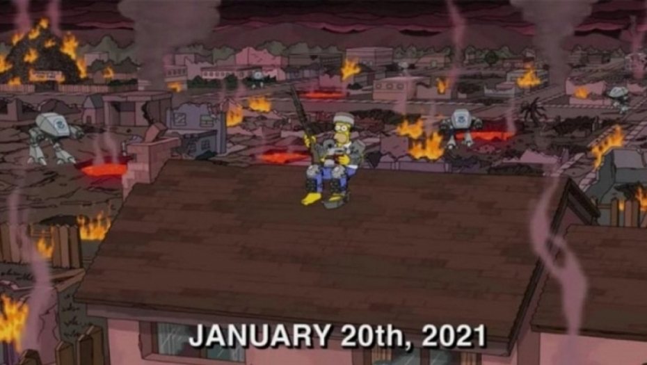 Bila je to četvrta epizoda, 32. sezone serije, koja je prikazana 1. novembra 2020. Ona pokazuje Springfild u haosu, zasut apokaliptičnim slikama, dok Homer Simpson sedi naoružan na krovu svoje kuće. Ispod piše datum - 20. januar 2021. Mnogi tviteraši se pitaju da li bi ovo moglo da bude još jedno, od mnogih predviđanja u seriji...