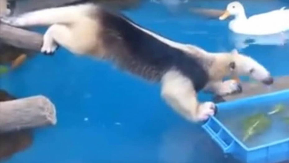 Mravojed se protegao koliko je dugačak, ne bi li dohvatio sledovanje koje je bilo namenjeno patkama.