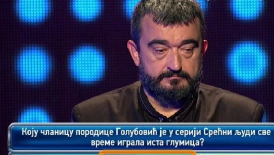 - Koju članicu porodice Golubović je u seriji "Srećni ljudi" sve vreme igrala ista glumica? - glasilo je pitanje koje je pročitao voditelj Jovan Memedović.