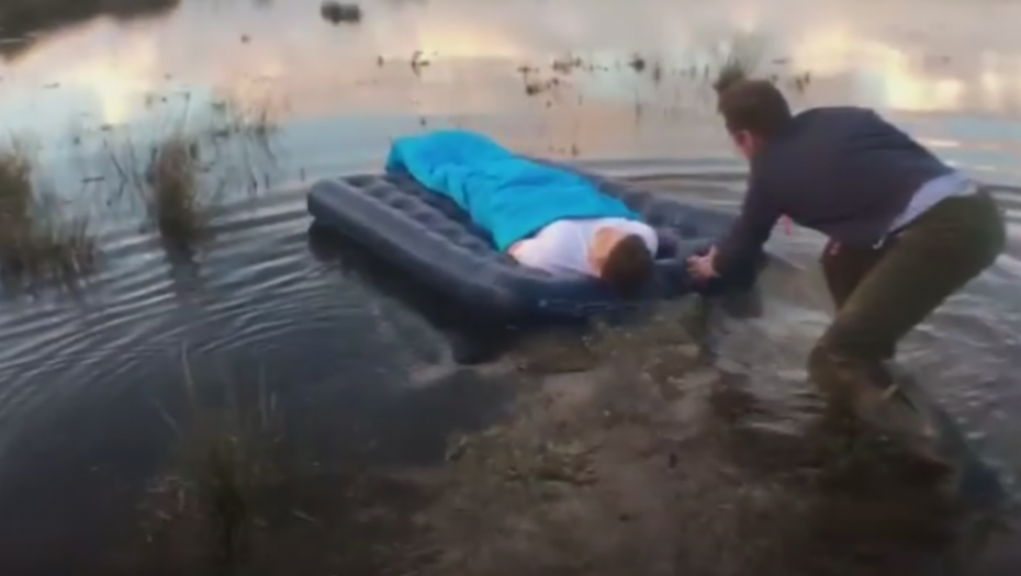 Usnulog druga na dušeku pustili niz vodu (VIDEO)