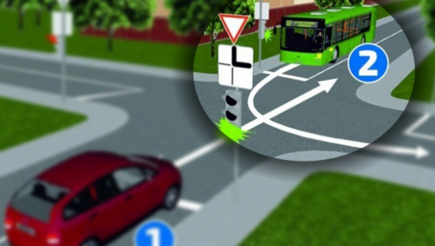Odgovor je – autobus. Iznad semafora nalazi se poseban znak koji ukazuje da autobus pri skretanju ima prvenstvo u odnosu na ostali saobraćaj. Ovo pravilo često zbunjuje vozače, pa je važno znati da takvi znakovi imaju prednost nad opštim pravilima na raskrsnicama.
