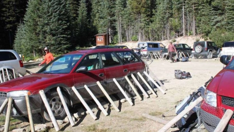 Kao što se vidi u videu, u nekoliko severnoameričkih parkova prirode odlučili su, kao metodu da izbegnu štetu koju uzrokuju životinje, da okruže automobile žicom, a zatim ga osiguraju letvama.