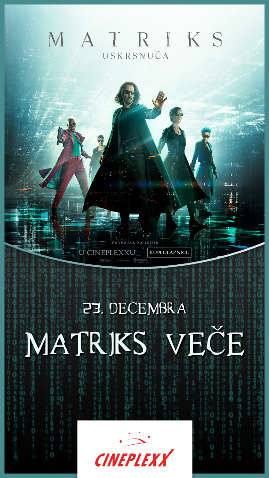 MATRIKS VEČE U CINEPLEXX BIOSKOPIMA Ne propustite nastavak kultne franšize 23. decembra od 20 časova!