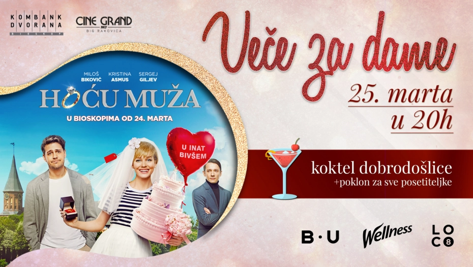 SA MILOŠEM BIKOVIĆEM 25. MARTA U VELIKOJ SALI KOMBANK DVORANE! Tradicionalno veče za dame uz film "Hoću muža"