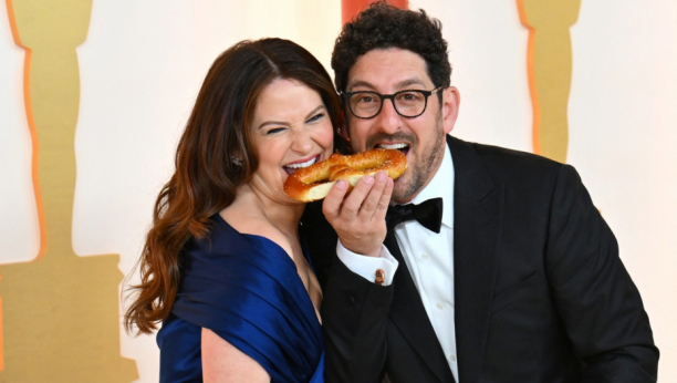 Zvezde su pozirale na crvenom tepihu dok su stizale u Dolbi teatar u Los Anđelesu na 95. dodelu Oskara. Pažnju je privukao glumački par Kejti Louz i Adam Šapiro. Par je sa sobom poneo perece i ponosno pozirao uz hranu pred okupljenim fotografima.
