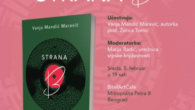 Prvi roman Vanje Mandić Maravić, Strana B, izazvao je veliko interesovanje čitalaca na Beogradskom sajmu knjiga krajem prošle godine, tokom kojeg se pojavio u knjižarama. Prvo vansajamsko predstavljanje 5. februara biće prilika za sve zainteresovane ljubitelje domaće literature da upoznaju autorku i nabave potpisan primerak ove intrigantne knjige.