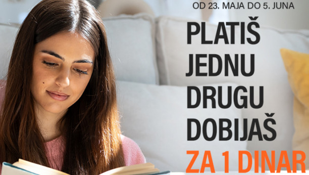 Ako volite beletristiku i teško vam je da izaberete samo jedan naslov, stiže pravo rešenje. U okviru promocije 2 za 1 – jer jedna knjiga nije dovoljna možete izabrati dva naslova iz pažljivo odabrane selekcije, i drugi – onaj jeftiniji – platiti samo jedan dinar. Sjajna prilika da spojite pisca kog već volite s nekim novim, koga želite tek da otkrijete. Jednu knjigu možete poneti na plažu, a drugu sačuvati za večernje sate. Ili da jednu ostavite sebi, a drugu poklonite nekome dragom.