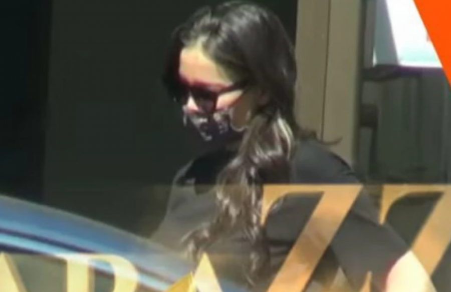 Stomak se nazire, dok je tridesetogodišnja glumica pokušala da ne privlači previše pažnje velikim naočarama, maskom na licu i jednostavnom odevnom kombinacijom crne boje.