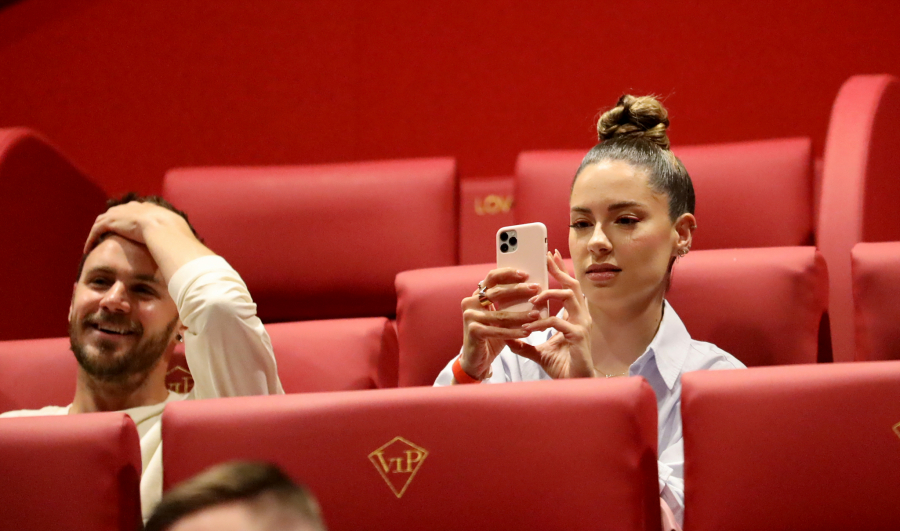 Sara i njen momak došli su u bioskop držeći se za ruke, a kako se čini, pevačica je jedva čekala da film počne.