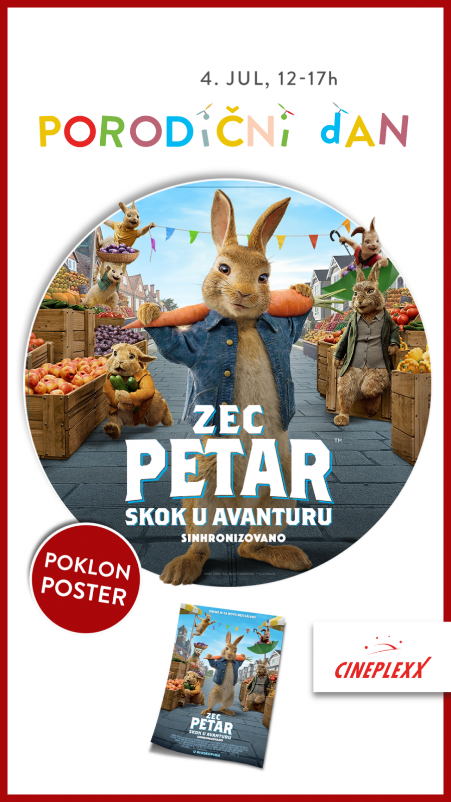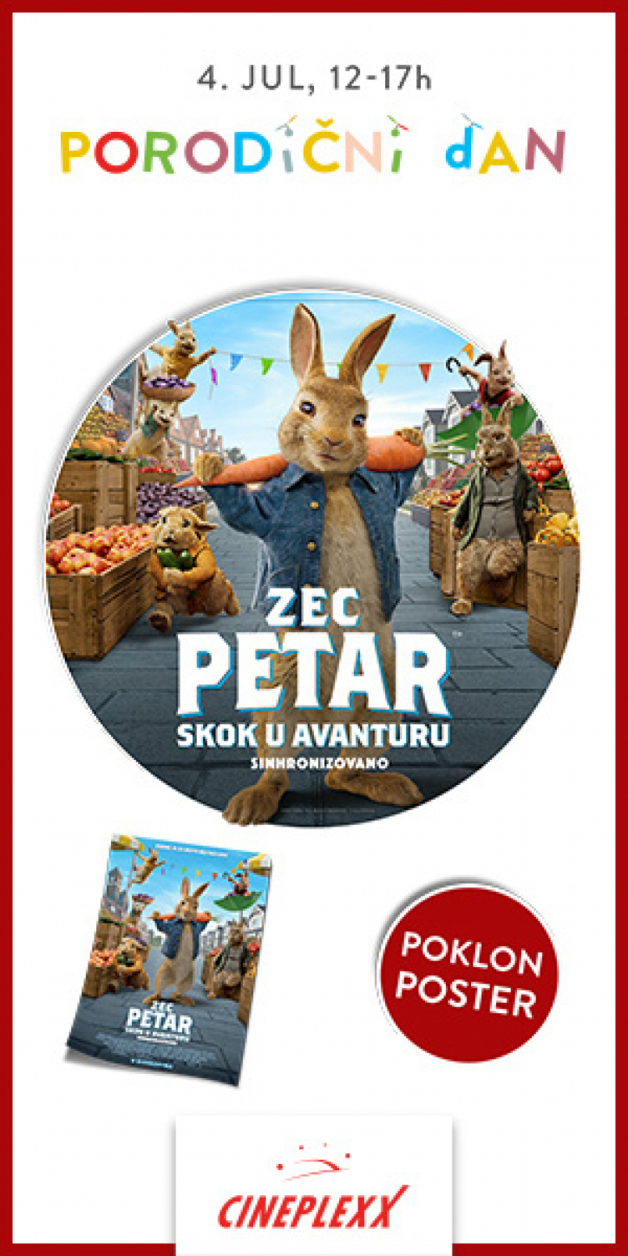 Uz svaku kupljenu kartu obradovaćemo mališane poklon posterom filma „Zec Petar – skok u avanturu“.