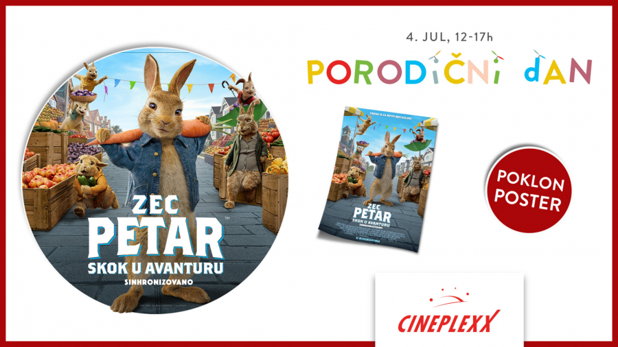 NOVE AVANTURE ZECA PETRA I DRUŽINE U CINEPLEXX BIOSKOPIMA Porodični dan uz sinhronizovani film ,,Zec Petar: Skok u avanturu“ 4. jula