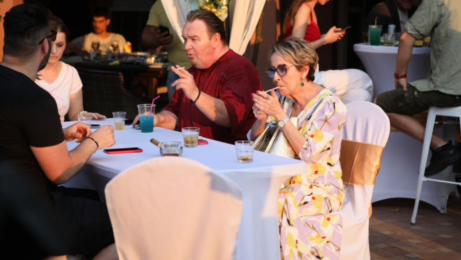 Ceca je najpre s kolegama nazdravljala sa čašicom žestine, dok cigaretu nije ispuštala iz ruke, pa ih je palila jednu za drugom. U jednom trenutku, Bojkovićeva je sa žestokog pića prešla na belo vino, a kako se čini, od tog miksa jedino je ogladnela.