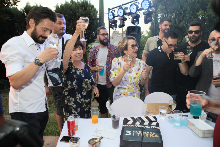 U to se uverio i paparaco Alo! koji ju je fotografisao dok je s kolegama slavila kraj snimanja serije „Tri muškarca i tetka“, a slavna glumica se na proslavi pojavila u stilu prave dame - u letnjoj haljini do poda i efektnim naočarima na licu.