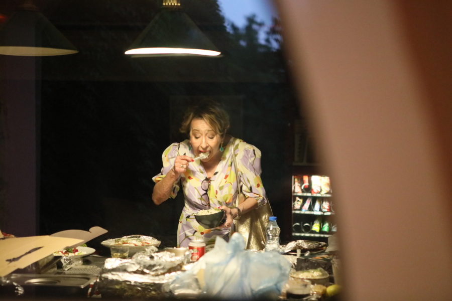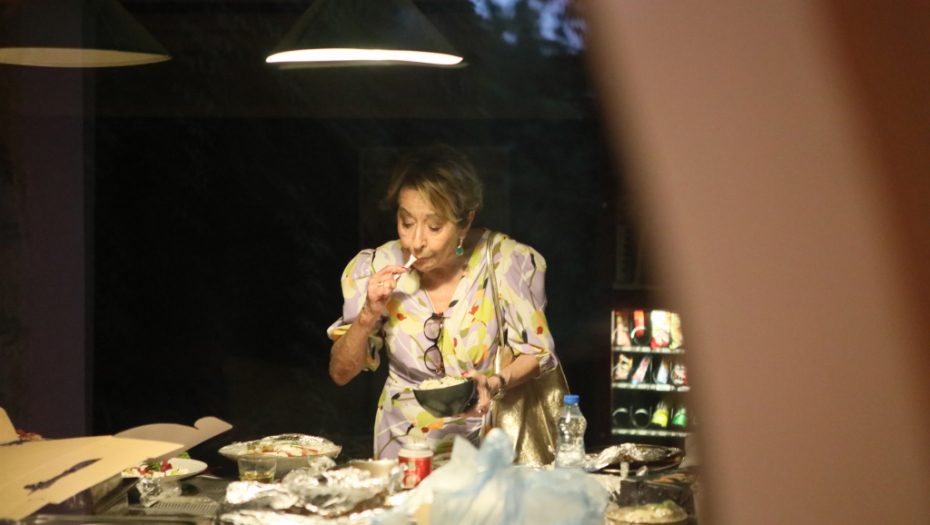 Bojkovićeva nije mogla da sačeka da organizatori iznesu posluženje za glumce, pa je sama otišla do kuhinje gde je navalila na salate i razne poslastice.