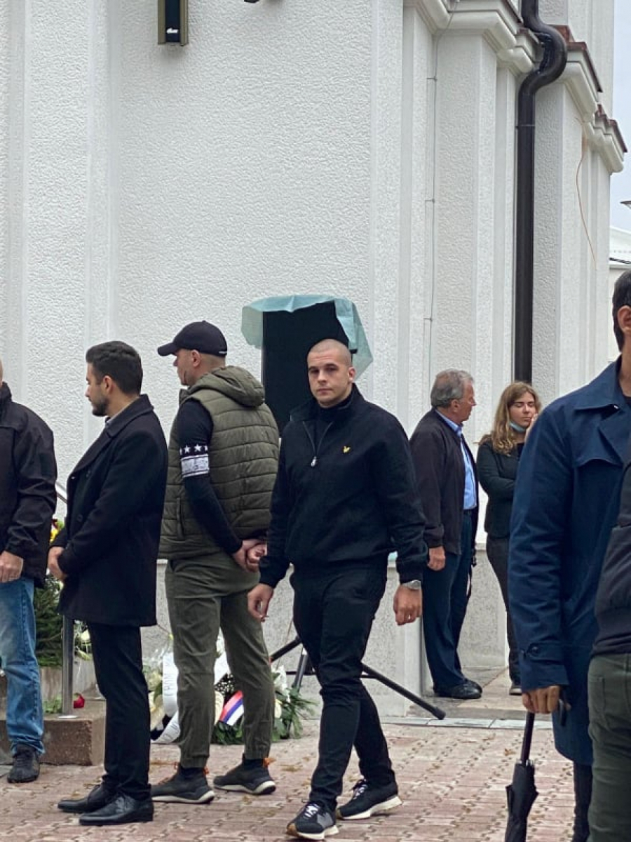 Iako je kovčeg već u crkvi, služba se održava napolju i držaće je starešina hrana Sredo Vranješ. Sanduk će zatim biti prenet na groblje u porodičnu grobnicu.