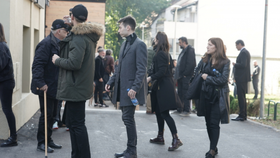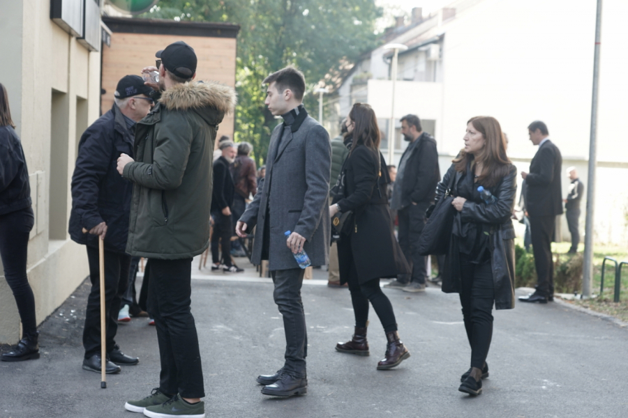 Ispred crkve na Novom groblju izložen je kovčeg, a mnogi glumci već su stigli.
