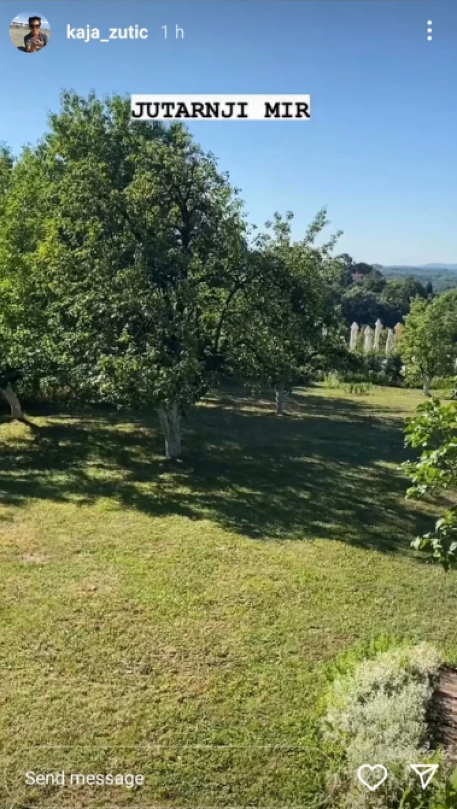 Naime, glumica je na Instagramu objavila kratki video u kojem je pokazala kako izgleda dvorište. Zelenilo, voćnjak, zazidana česma, cvrkut ptica i čistiji vazduh su pravo parče raja.
