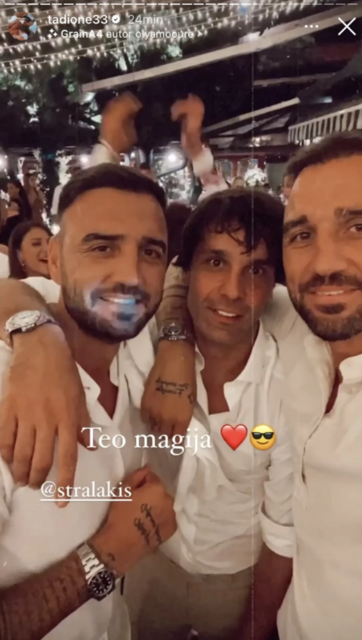 Pevači Milica Pavlović i Dejan Matić, kao i sportisti Danilo Anđušić, Ivana Maksimović, Miloš Teodosić i Tadija Dragičević, bili su na veselju, koje je potrajalo do kasno u noć.