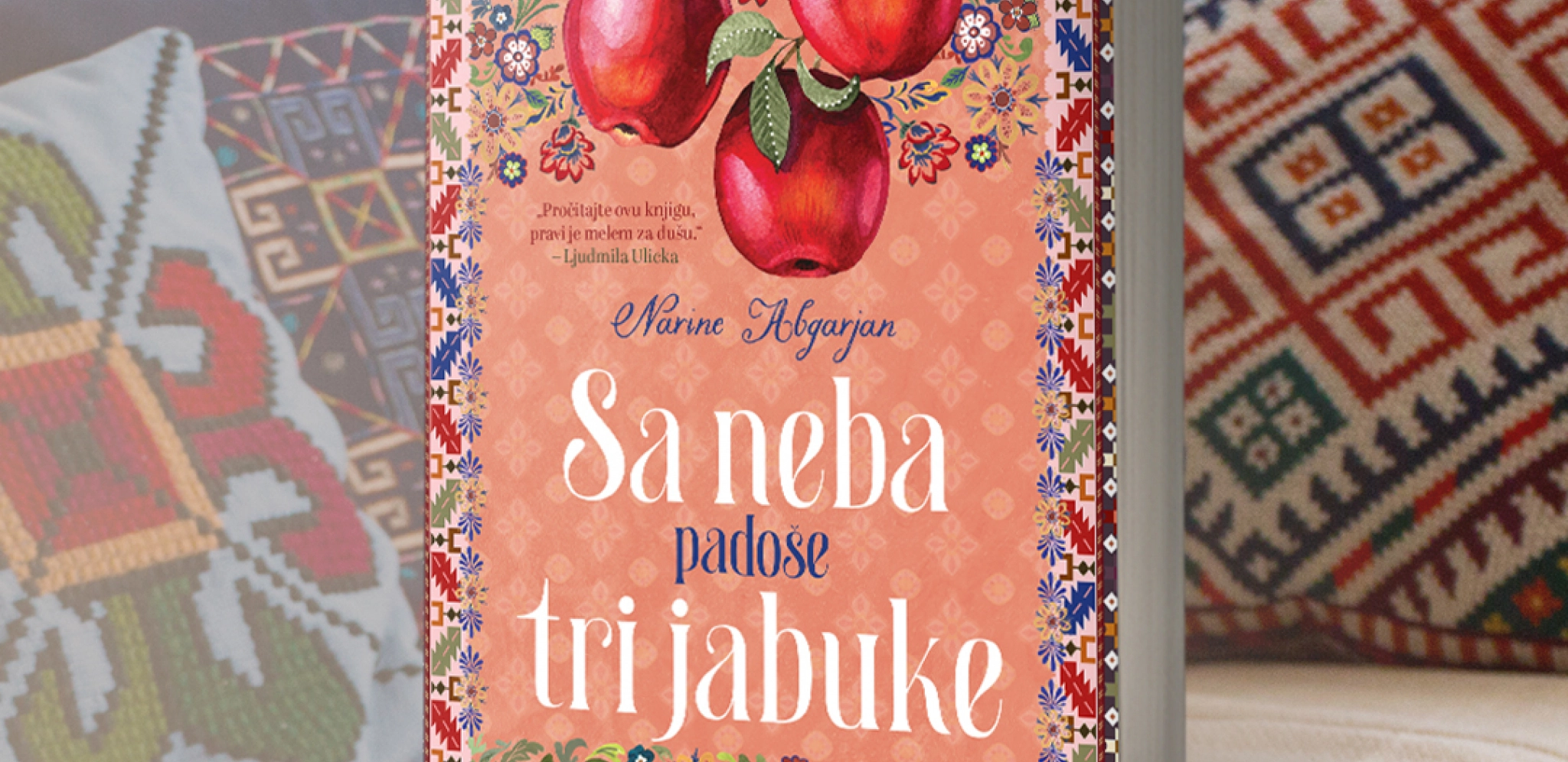 U višestruko nagrađivanom romanu jermenske književnice Narine Abgarjan "Sa neba padoše tri jabuke" sudbine nekoliko generacija povezuju ljubav i bol, osveta i praštanje, stvarno i čarobno. Puna raskošnih slika, ovo je priča o snazi prijateljstva.