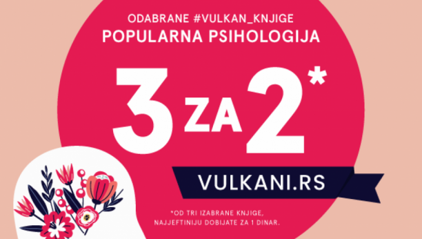 Vulkan izdavaštvo odlučilo je da obraduje svoje čitaoce fenomenalnom akcijom u trajanju od čak 14 dana! Od 17. do 30. marta kupovinom dva naslova sa liste odabranih knjiga iz oblasti popularne psihologije, treći najjeftiniji dobijate za 1 dinar. Dostava je besplatna na teritoriji Republike Srbije tokom trajanja akcije.