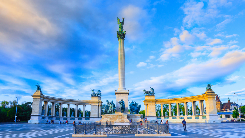 Na vrhu Milenijumskog stuba visokog 36 metara nalazi se krilati kip anđela Gabrijela a levo i desno u podnožju kipovi istaknutih istorijskih ličnosti Mađarske. U centru najimpresivnijeg gradskog trga Budimpešte je i Grob neznanog junaka.