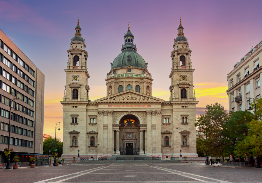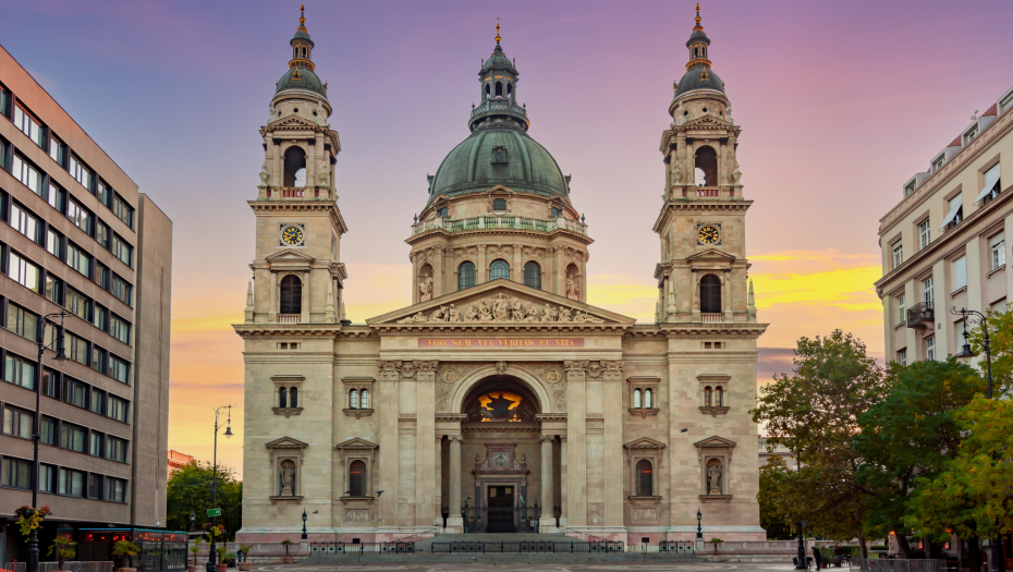 Najveća crkva u Budimpešti može da primi 8500 ljudi a ime je dobila je po Svetom Stevanu (Szent István) prvom kralju Mađarske. Otvorena je 1906. godine nakon 50 godina izgradnje. Sa vrha njenog tornja do koga se dolazi liftom se pruža predivan panoramski pogled na celu Budimpeštu. Ulaz u crkvu je slobodan ali se izlaz na vidikovac koji okuružuje kupolu naplaćuje.