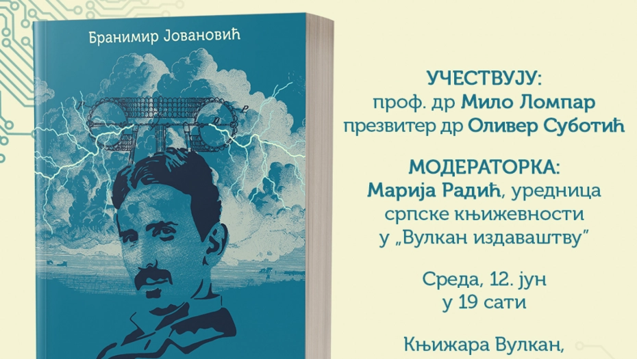 U knjižari Vulkan u Sremskoj 2, u Beogradu, u sredu, 12. juna, od 19 sati, biće predstavljena dosad najobuhvatnija knjiga o naučniku koji je promenio svet Tesla – duh, delo, vizija Branimira Jovanovića, odnedavno dostupna čitaocima u izdanju Vulkan izdavaštva.