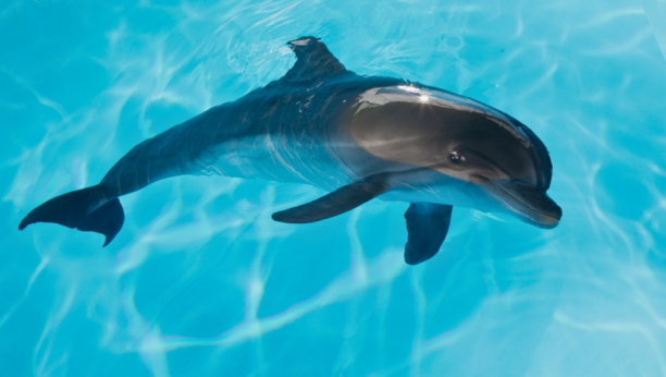 U videu se vidi štene zlatnog retrivera koje u čamcu čeka da mu se pridruži prijatelj - mladi delfin.
