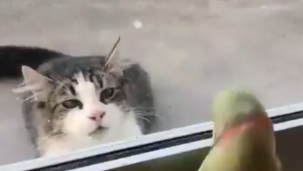 OVAKVU REAKCIJU NIKO NIJE OČEKIVAO Mačka je spazila papagaja iza prozora, a onda je usledio šok (VIDEO)