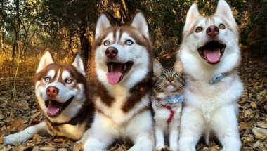 Tri sibirska haskija Lilo, Infiniti i Miko "usvojili" su mače Rouzi koja s psima provodi sve vreme i skoro se ponaša poput njih, prenosi Anadolu Agency (AA). Vlasnica životinja Toa Bui tvrdi da je Rouzi pronađena kada je imala samo tri nedelje i bila neuhranjena i na ivici smrti.