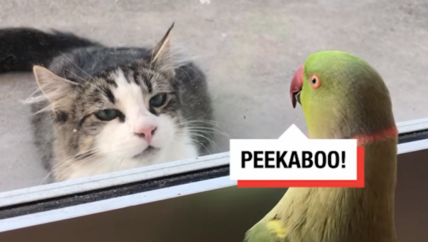 Mačke su prirodni lovci koji samo čekaju da zgrabe svoj plen, a to često jesu pernati "uljezi" u njihovoj blizini. Kao prirodni predatori baciće oko na svaku pticu koju ugedaju, a kandžu ako je se dočepaju. Međutim, ovaj papagaj se malo zaigrao i urnebesno iznervirao mačku koja je bila sa druge strane prozora.