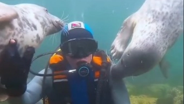 U snimku možemo videti kako je foka pristupio roniocu i zgrabio ga za kapu, pokušavajući da ga izvuče na površinu vode. Međutim, ronilac nije odmah shvatio šta pokušava da uradi.