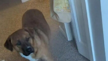 Na snimku se vidi kako ledeni vazduh ulazi u hodnik kuće, a pas je iznenađen i pomera se u topliji deo kuće.