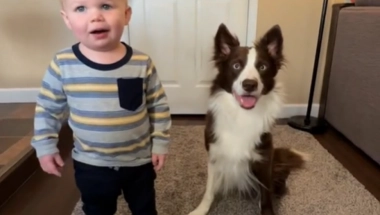NEŠTO NAJSLAĐE ŠTO ĆETE DANAS VIDETI Pas i dete stoje jedno pored drugog i rade OVO (VIDEO)
