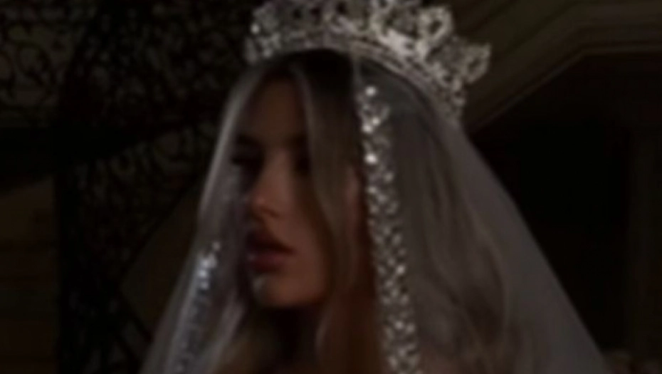 Video prikazuje mladu kako polako ulazi u crkvu, obučena u haljinu sa izuzetnim detaljima i nesvakidašnjim krojem.
