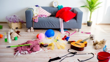 Dnevni boravak ličio je na ratnu zonu – televizor uključen, dok su igračke i odeća bile razbacane na sve strane.