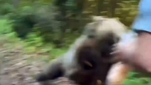Na snimku se vidi muškarac koji hrani divljeg medveda pored puta. Ovaj nesvakidašnji susret s prirodom izazvao je brojne reakcije na internetu.