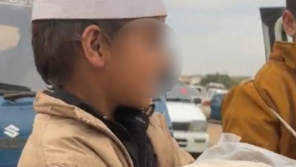 Dečak, star oko 10 godina, snimljen je dok je sa bratom prodavao lokalnu hranu na pijaci.