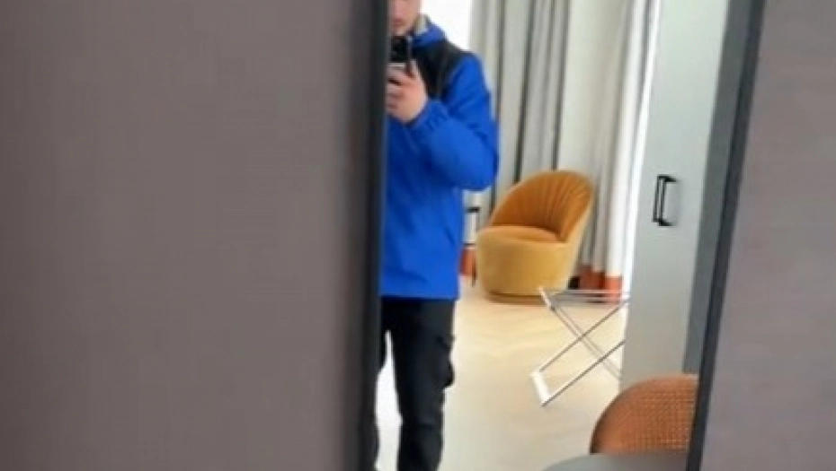 Tiktoker je svoje pratioce sproveo kroz hotelsku sobu u Amsterdamu, gde prvo vidimo ormar, sto, televizor i krevet. Zatim, kadar se menja i pred nama se pojavljuje avion, kao da je ugrađen u pod.