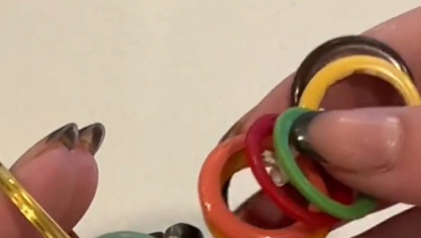Dok je snimala sebe kako vadi nakit iz torbe, pokazala je kako je pronašla set prstenova dizajniranih da stane oko sata.