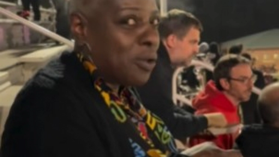 U videu Afroamerikanka koja se suočava sa simptomima menopauze, uključujući ćelavost, sedi napolju tokom zime, dok se iznad njene glave jasno vidi oblak dima. Izgleda kao da joj se glava bukvalno puši.