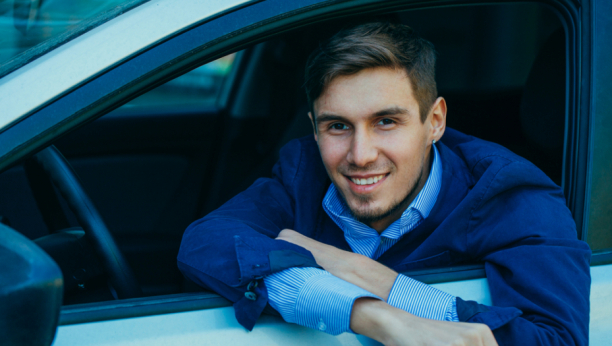 Ženska sedi u autu čekajući zeleno na semaforu, a u traci do nje stane Mujo sa svojim autom.
