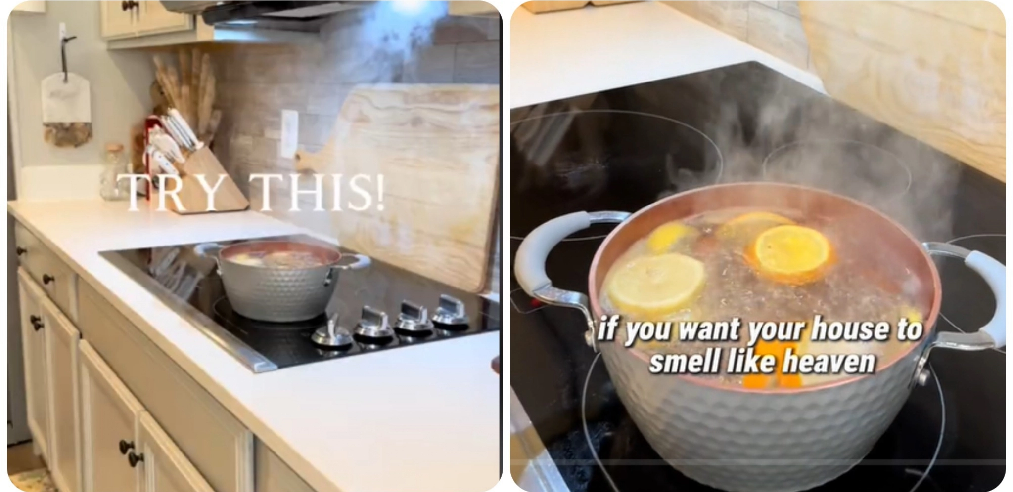 Na laganu vatru stavite posudu s vodom, pa dodajte kriške limuna ili pomorandže, svežu nanu ili lavandu, latice cveća, u zavisnosti od godišnjeg doba i ukusa.